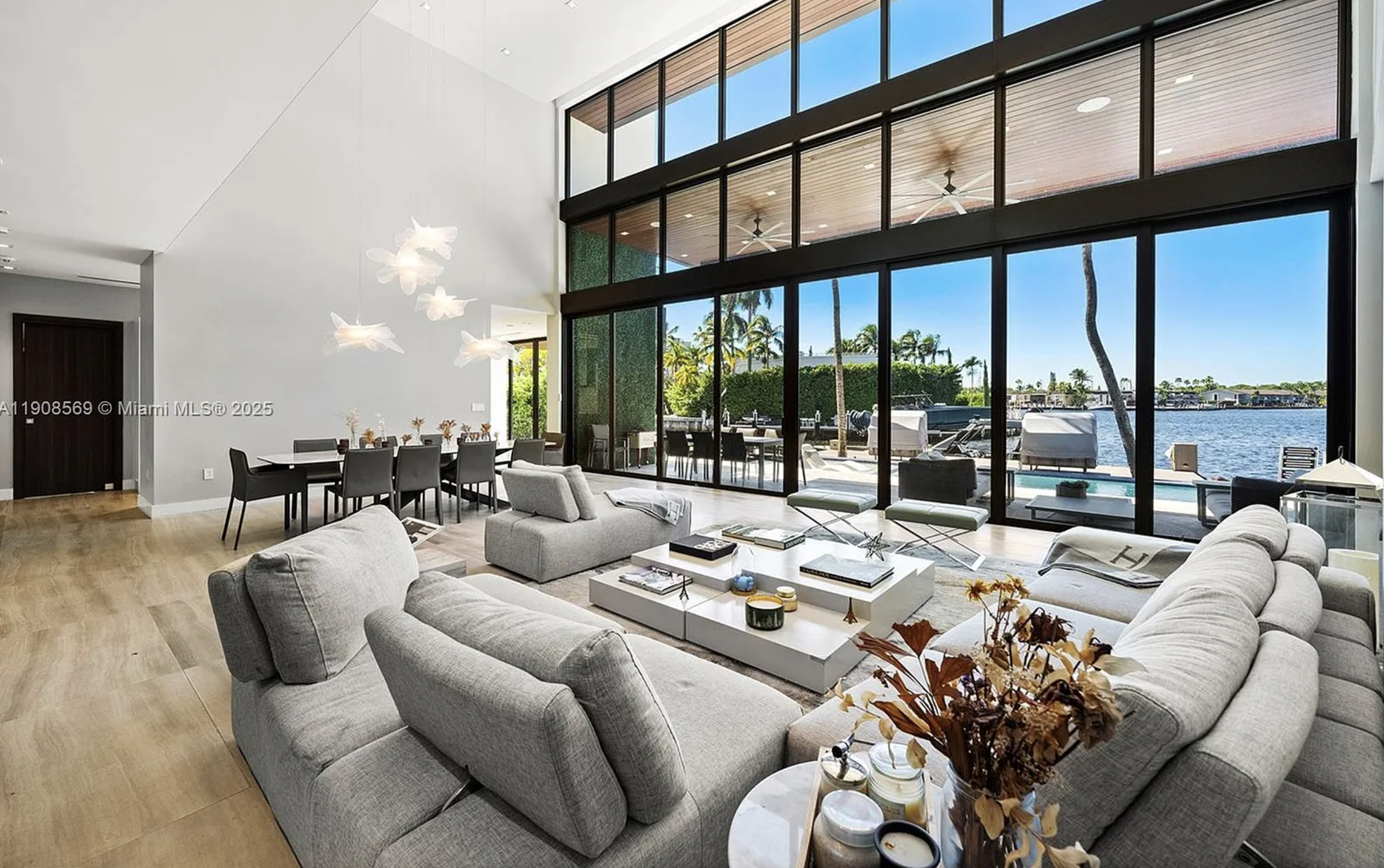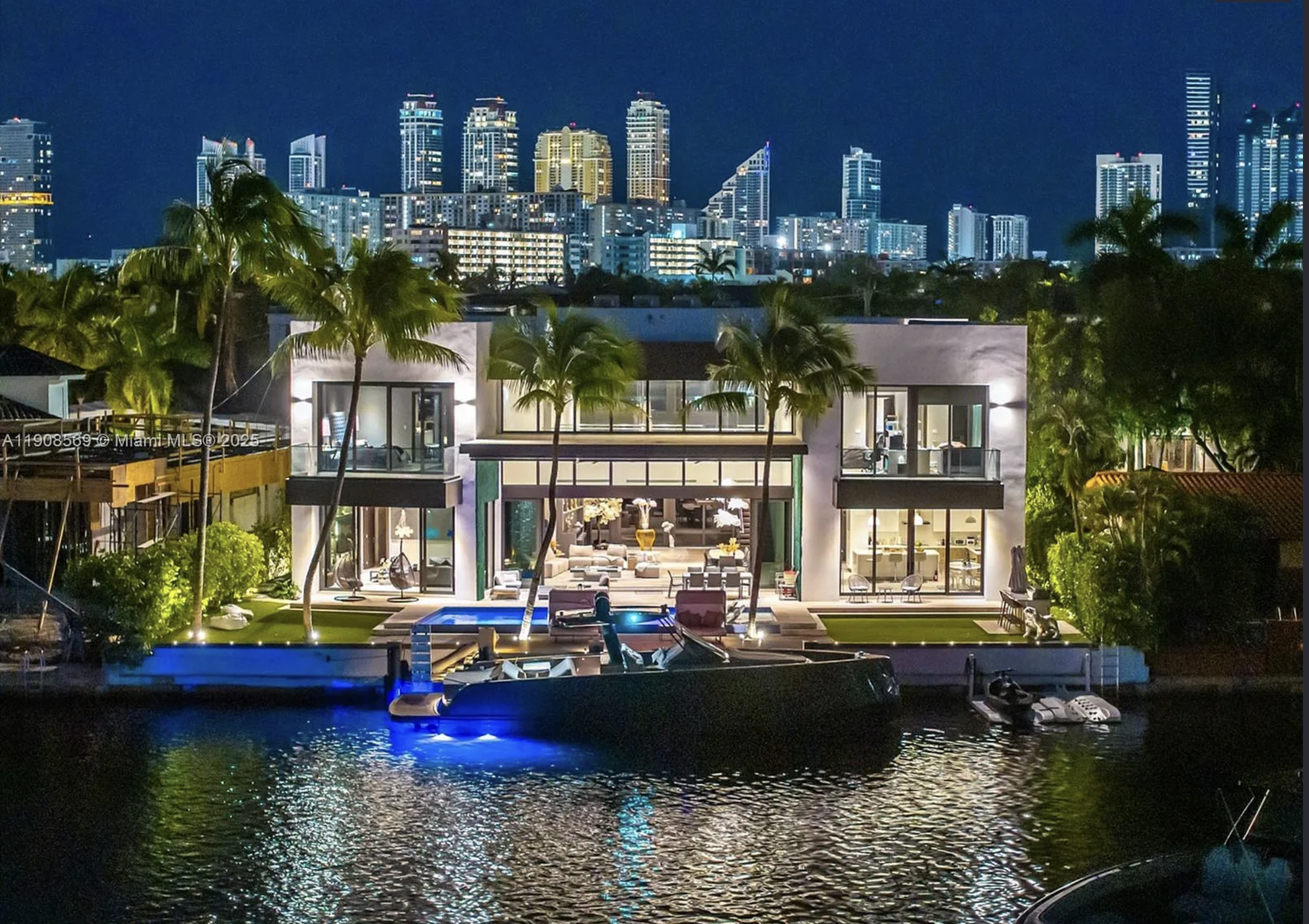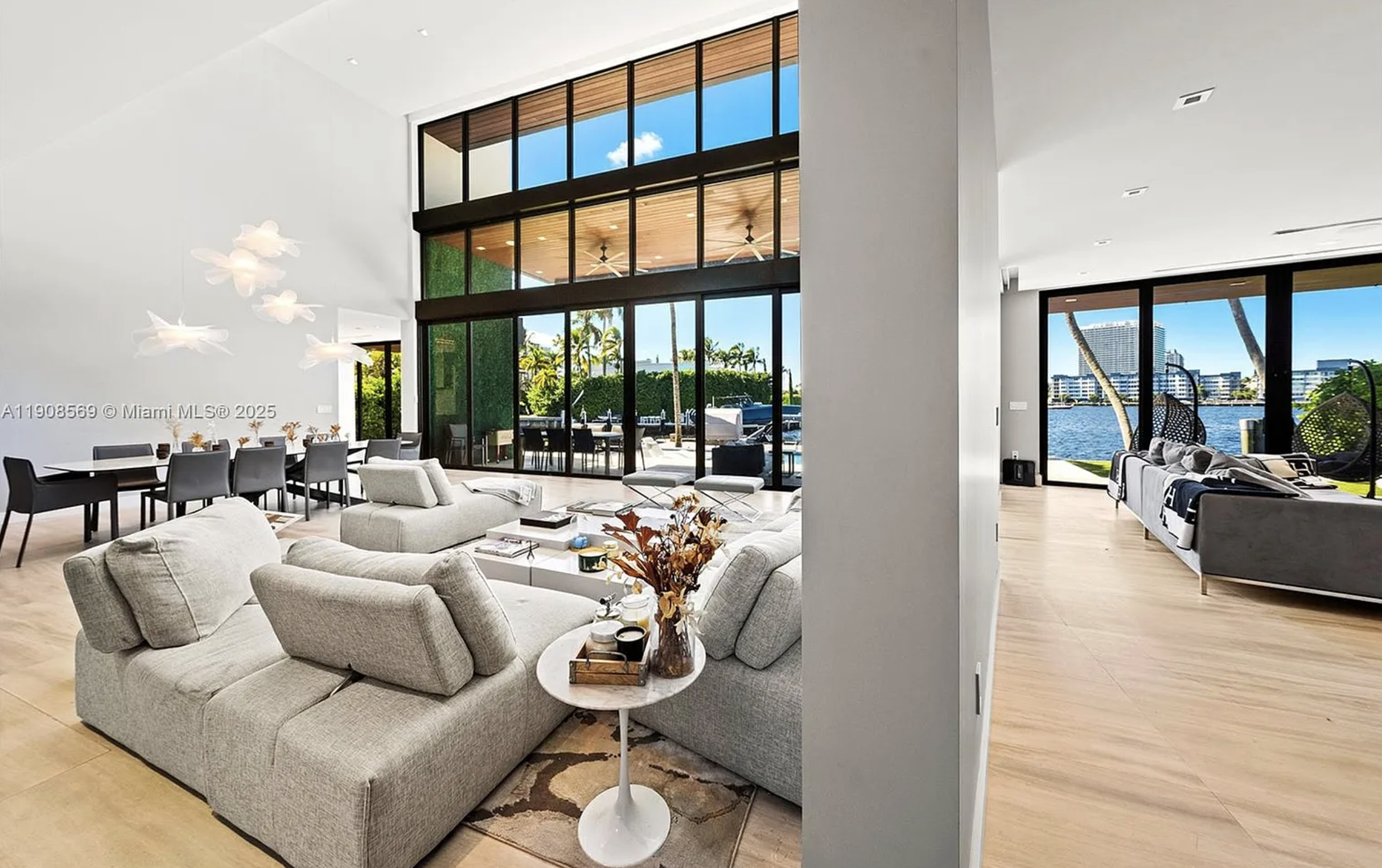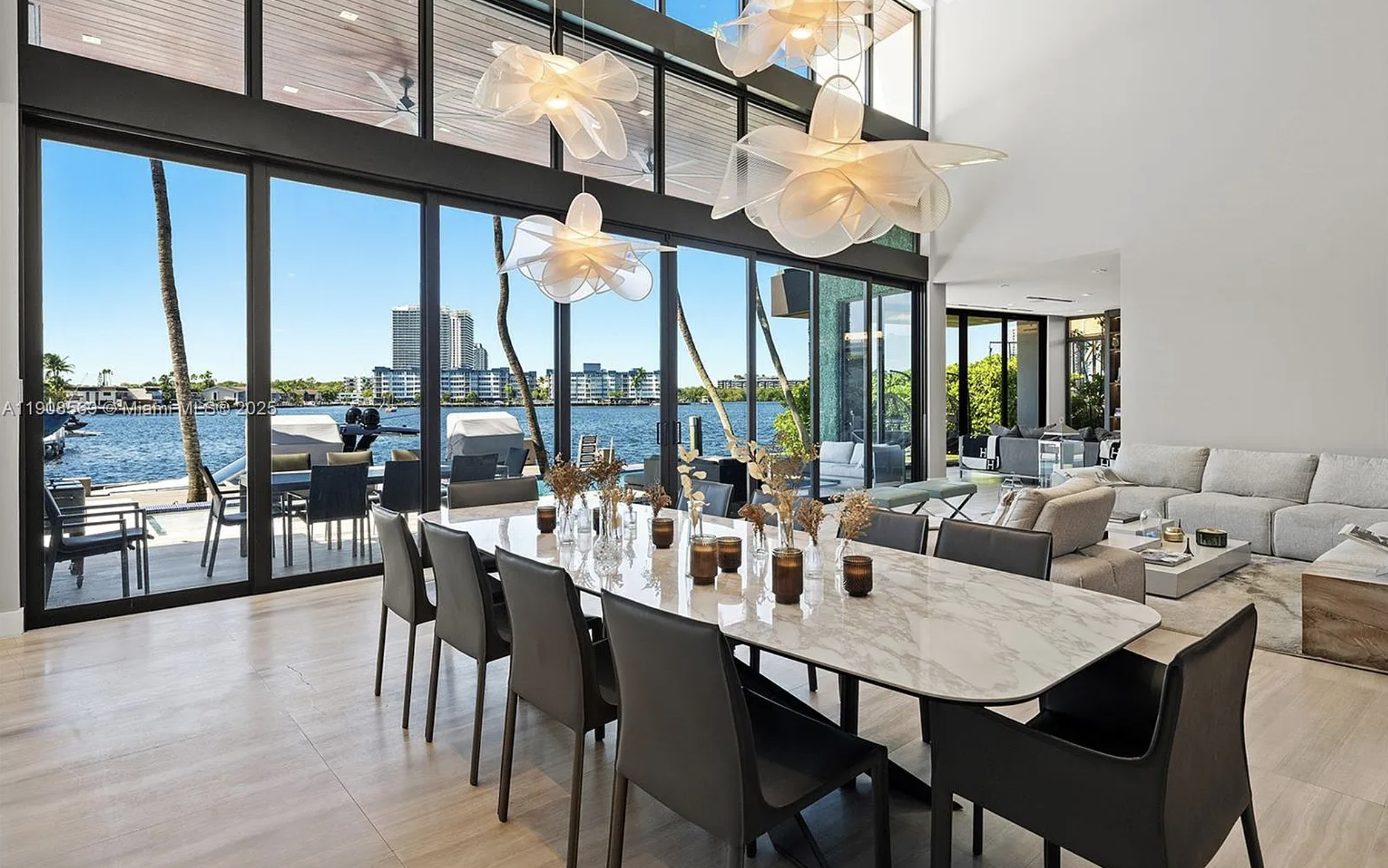 Located in exclusive gated neighborhood of Eastern Shores, perfectly positioned between Aventura, Sunny Isles, and Bal Harbour, this newly built modern masterpiece captures one of the rare wide-open views of Maule Lake. Soaring ceilings and a full wall of glass draw the water straight into the living space, while 100 feet of waterfront provides prime dockage in a calm no-wake zone. The private backyard and peaceful setting make it ideal for quiet luxury living, with ocean access in under ten minutes. Featuring a top-of-the-line Italian chef’s kitchen and fully built-out closets, this is Eastern Shores at its best.
