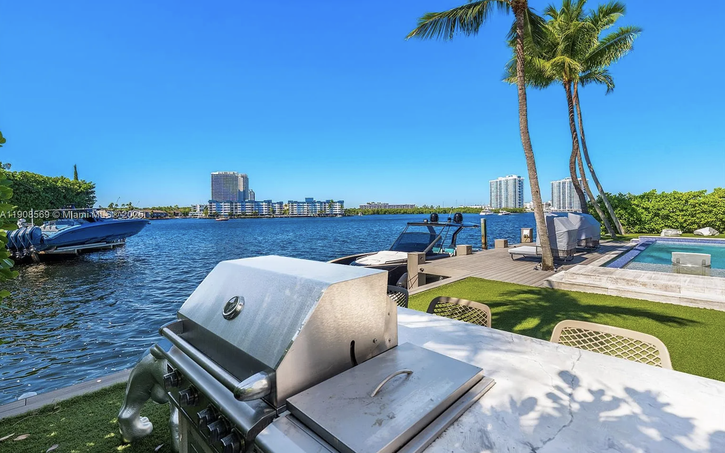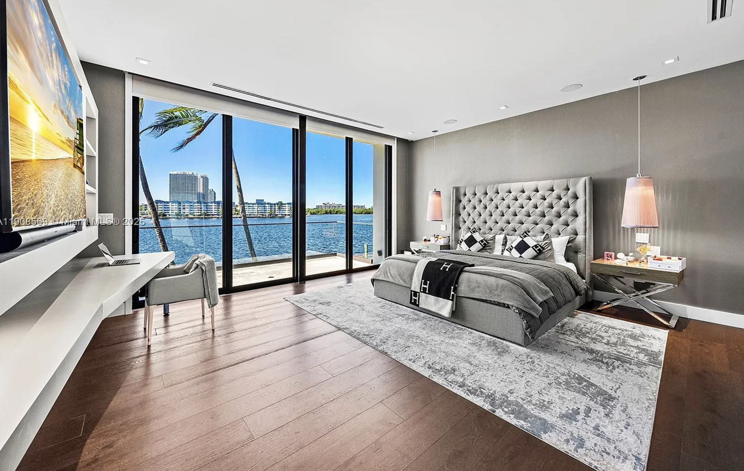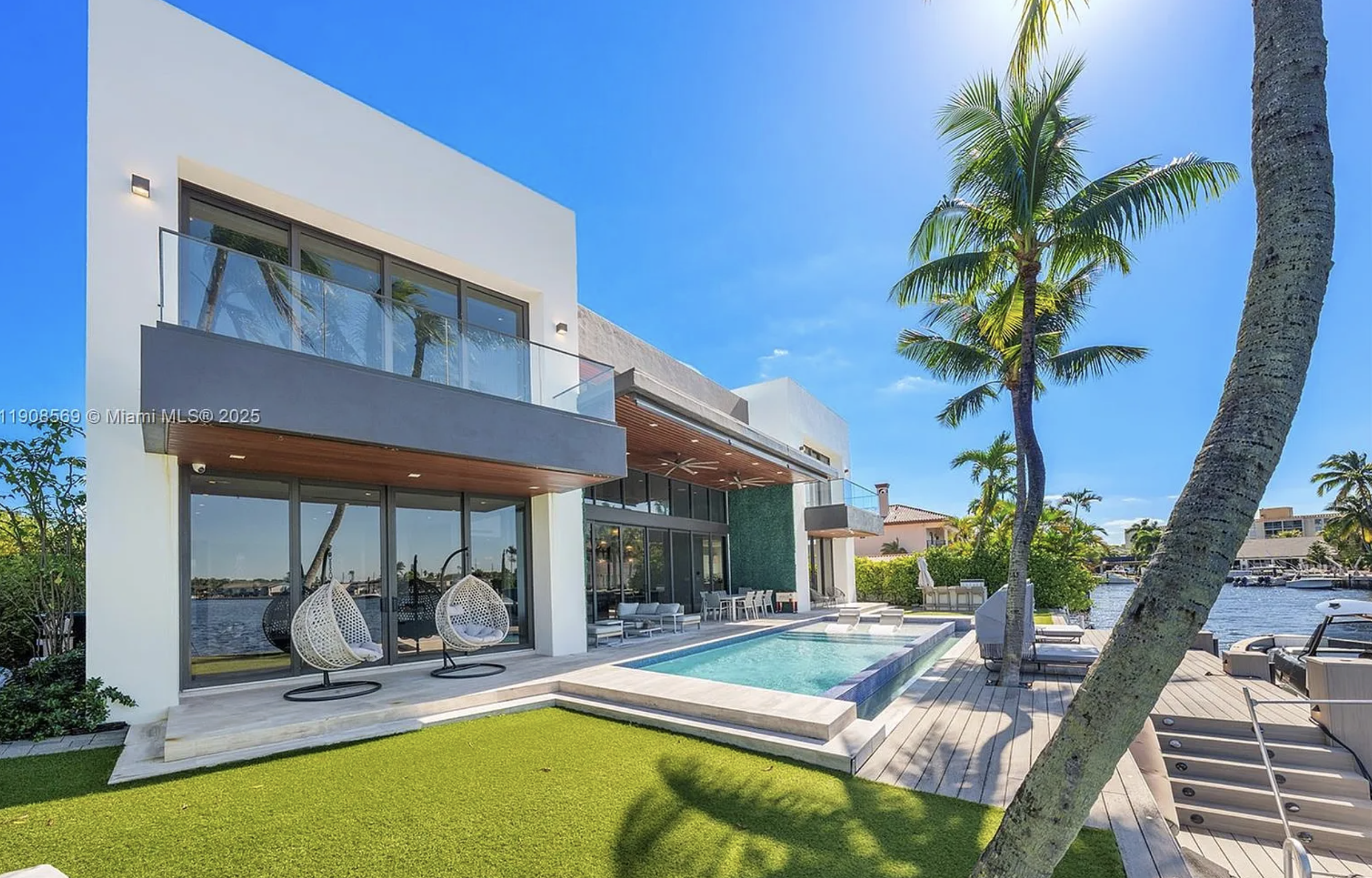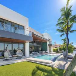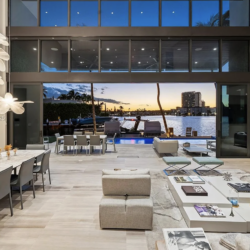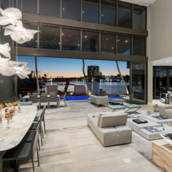 Located in exclusive gated neighborhood of Eastern Shores, perfectly positioned between Aventura, Sunny Isles, and Bal Harbour, this newly built modern masterpiece captures one of the rare wide-open views of Maule Lake. Soaring ceilings and a full wall of glass draw the water straight into the living space, while 100 feet of waterfront provides prime dockage in a calm no-wake zone. The private backyard and peaceful setting make it ideal for quiet luxury living, with ocean access in under ten minutes. Featuring a top-of-the-line Italian chef’s kitchen and fully built-out closets, this is Eastern Shores at its best.